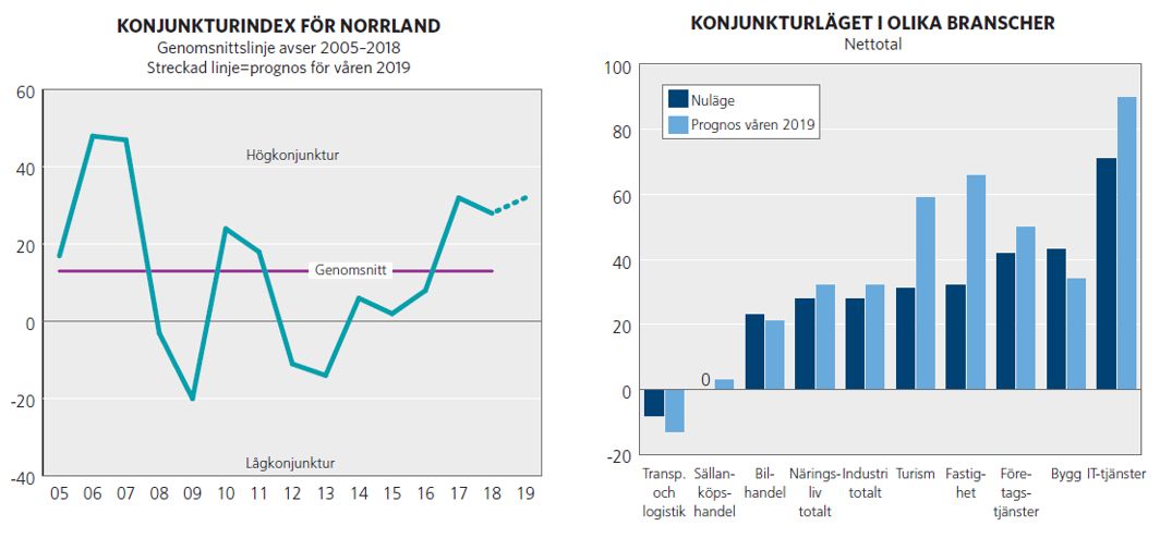 Konjunkturbarometern för Norrland bygger på en postenkät till ca 1 000 företag inom följande huvudbranscher: industri, byggverksamhet, sällanköpshandel, bilhandel, transport & logistik, fastighetsverksamhet, företagstjänster, IT-tjänster samt turism. Undersökningen, som ger en totalbild för hela Norrland, har dessutom brutits ned på de 5 länen Gävleborgs län, Västernorrlands län, Jämtlands län, Västerbottens län och Norrbottens län. Höstens mätningar – där svaren från företagen samlats in under september och början av oktober – avser utfall för första halvåret 2018, en nulägesbeskrivning för hösten i år och en prognos för första halvåret 2019.