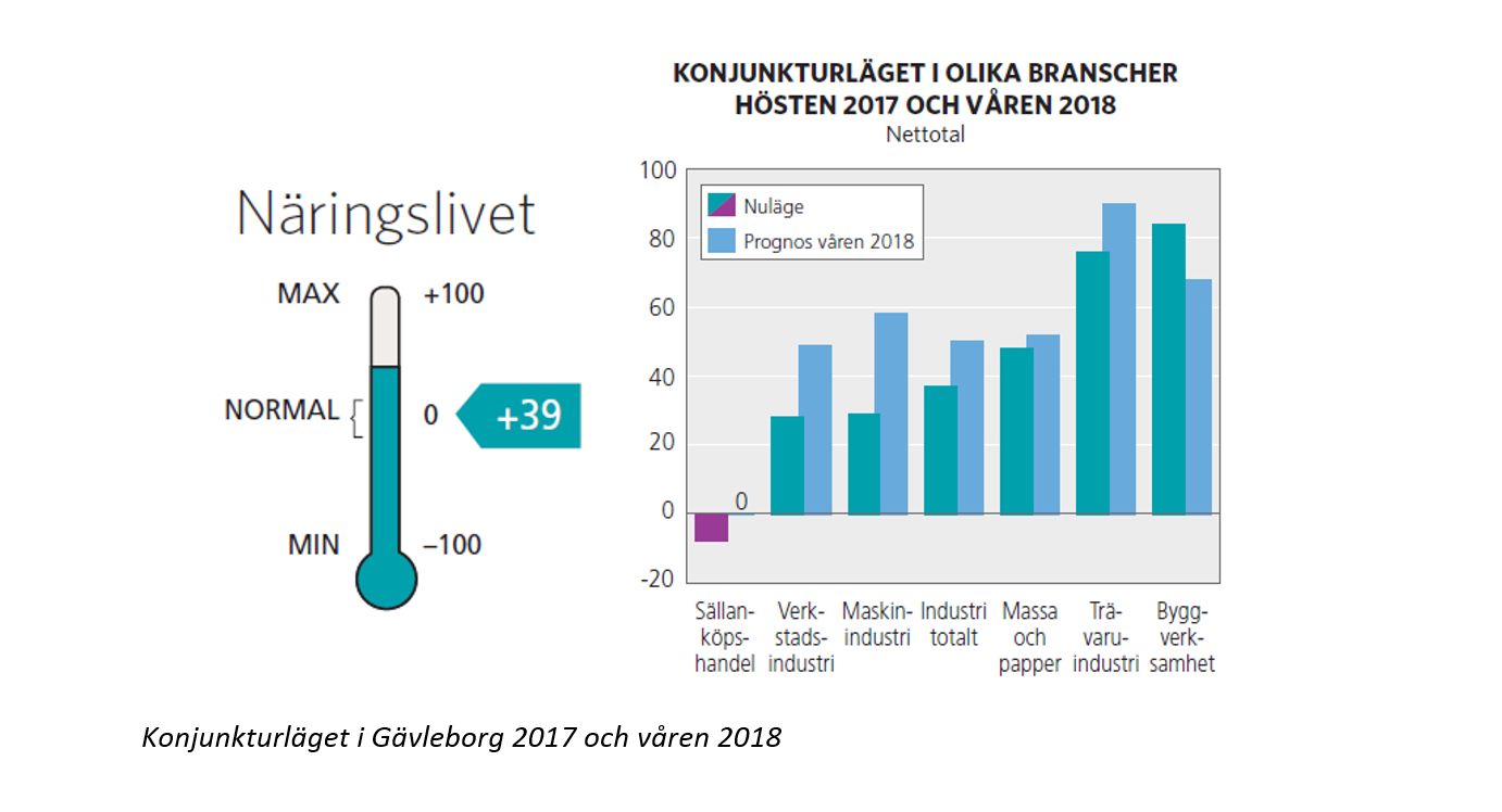 Industrikonjunkturen i Gävleborg har fått ett rejält uppsving det senaste året och konjunkturindex har ökat med 52 enheter från –15 i fjol till +37. Detta indikerar att konjunkturen är klart starkare än normalt. I fjol spådde företagen inom verkstadsindustrin ett förbättrat läge framöver och höstens mätning visar att konjunkturen har förbättrats markant. Verkstadsföretagen har skruvat upp produktionen för att möta den ökade orderingången från både hemma- och exportmarknaden.