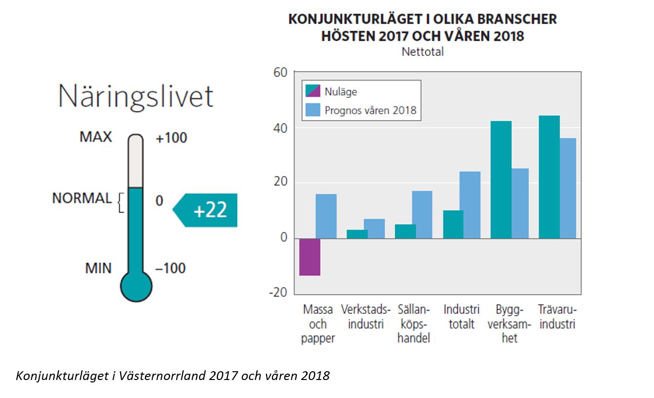 – Konjunkturindex visar på +22, vilket indikerar att Västernorrland har en stark konjunktur. Industrikonjunkturen har förbättrats för andra året i rad och inom byggbranschen fortsätter det urstarka läget. Den för länet så viktiga massa och pappersindustrin har tilltagande framtidstro inför våren 2018. Det är mycket positivt, säger Lars-Olov Söderström, Norrlandsfonden.